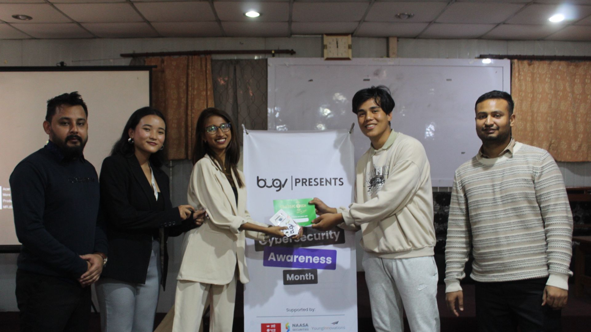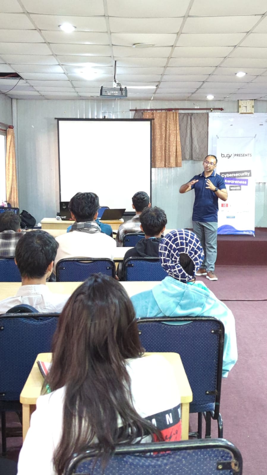 Following Mr. Shrestha’s foundational talk, Bugv’s own cybersecurity experts took the stage to delve into more technical aspects of the field. They provided insights into bug hunting, phishing attacks, and the range of preventive strategies that individuals and organizations can employ. By introducing students to real-world applications, such as risk assessment, threat modeling, and vulnerability management, Bugv’s team demonstrated how these cybersecurity principles function in professional settings.