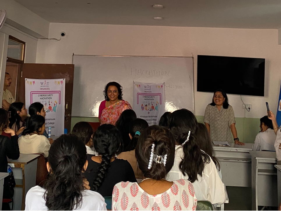 The event began with a warm welcome from the WIIT team, who outlined the event’s objectives and schedule. The atmosphere was filled with excitement as participants, primarily female students from various institutions, gathered to dive into the world of cybersecurity. Nepal Telecom’s involvement added significant value, while Himalayan WhiteHouse College provided essential support for the event.